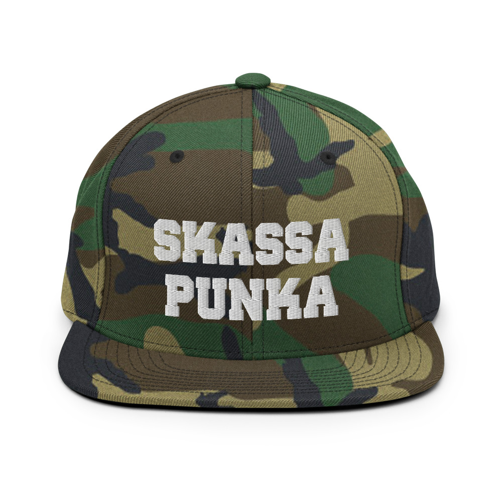 • 80% acrylic, 20% wool (green camo is 60% cotton, 40% polyester) • Structured, 6-panel, high-profile • Plastic snap closure • Green under visor • Print is embroidered